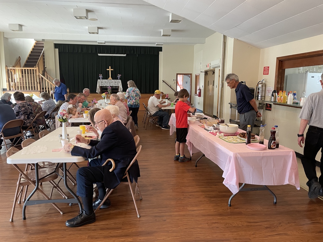 We had about 30 people attend, and we served French Toast, bacon, Coffee Cake, fruit, juice and coffee. The men of the church were the hosts, and the women of the church will host the Father's Day Brunch coming up on Sunday June 15.